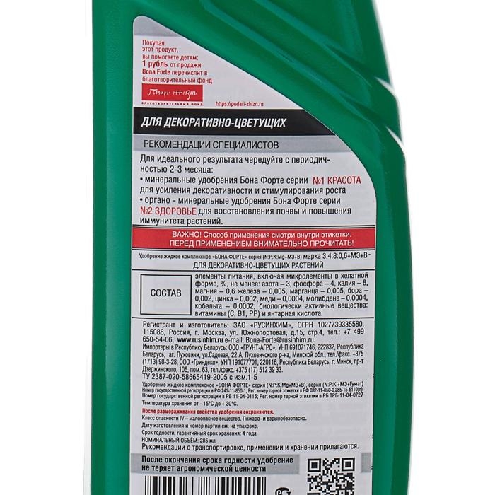 Удобрение для декоративных цветущих Bona Forte, флакон, 285 мл