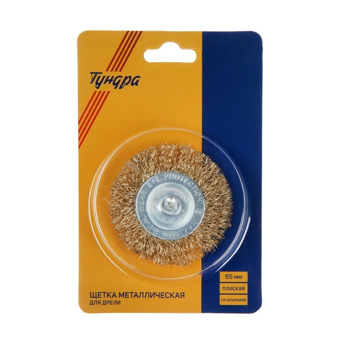 Щетка металлическая для дрели ТУНДРА, со шпилькой, плоская, 65 мм