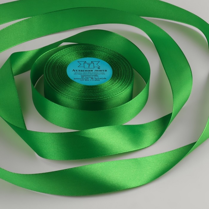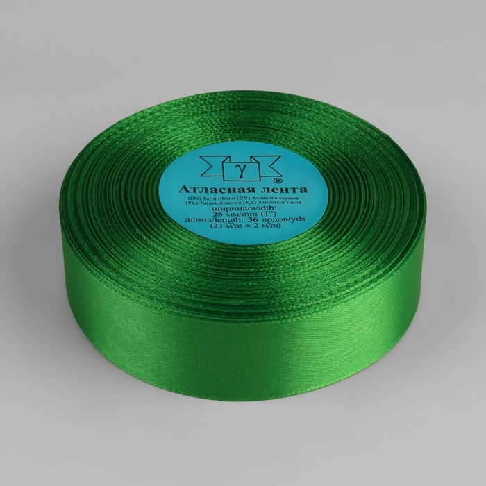 Лента атласная, 25 мм × 33 ± 2 м, цвет зелёный №134