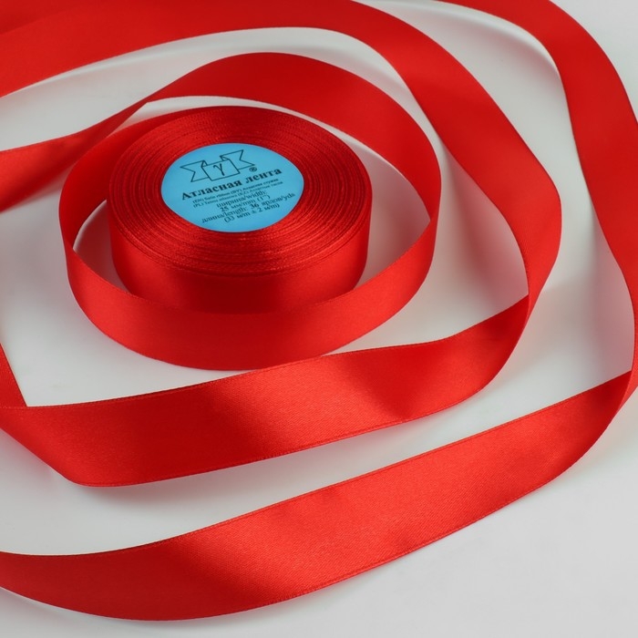 Лента атласная, 25 мм × 33 ± 2 м, цвет красный №026