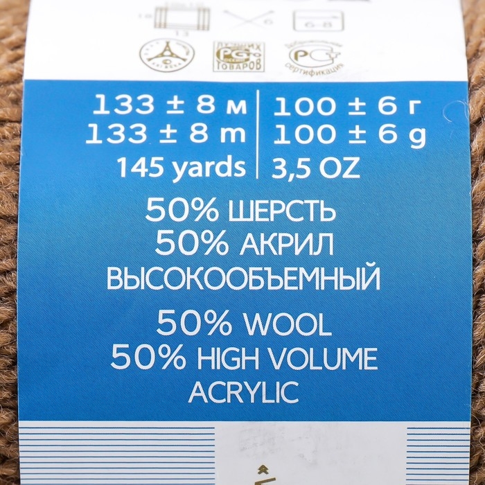Пряжа для вязания спицами, крючком «Пехорский текстиль. Популярная», 50% шерсть, 50 % акрил, 133 м/100 г, (412 верблюжий)