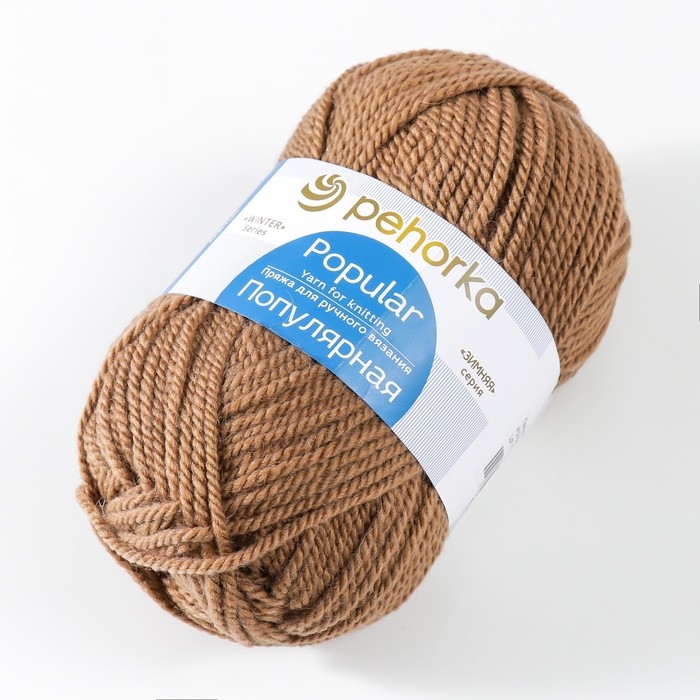Пехорская пряжа зимней серии отличается особым способом кручения нити, за счёт которого она становится воздушной и надолго задерживает тепло. Объёмная мягкая пряжа для вязания спицами, крючком «Пехорский текстиль. Популярная», 50% шерсть, 50 % акрил, 133 м/100 г, (412 верблюжий) в своём составе имеет импортную тонкую шерсть и высокообъёмный акрил в равных пропорциях. Из такого сырья получаются отличные толстые свитера, джемперы, пуловеры, кардиганы вещи, которые сохранят тепло в зимнюю стужу.