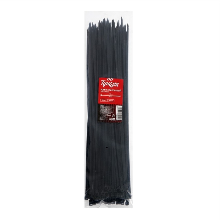 Хомут нейлоновый для стяжки, ТУНДРА, 3,6х300 мм, черный, 100 шт
