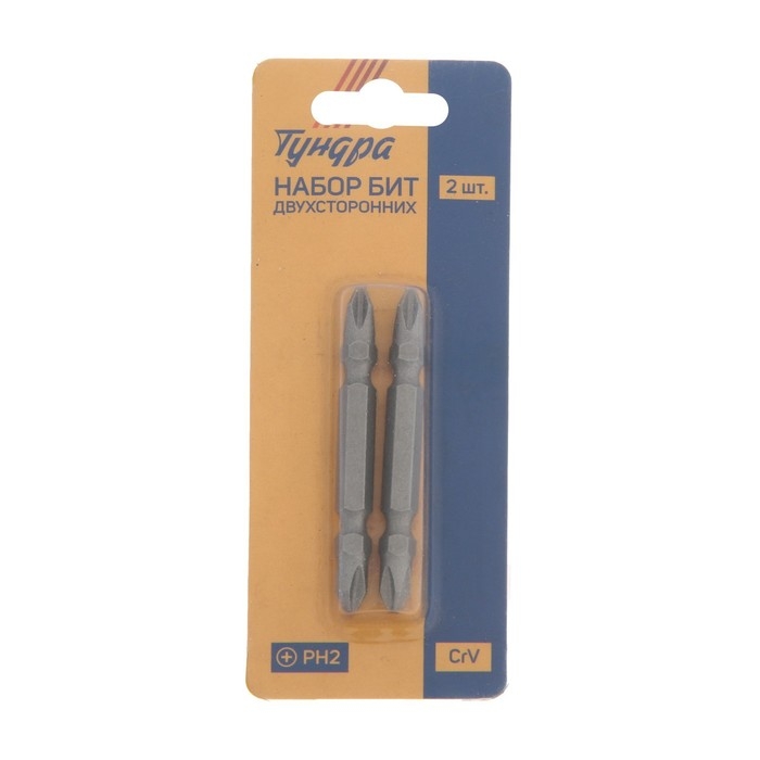 Биты двухсторонние ТУНДРА, намагниченные, сталь CrV, PH2 х 65 мм, 2 шт.