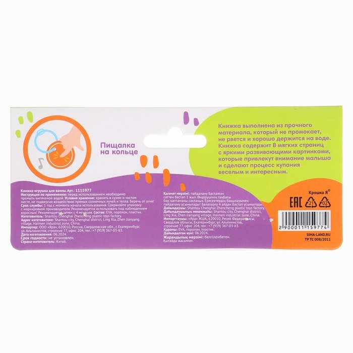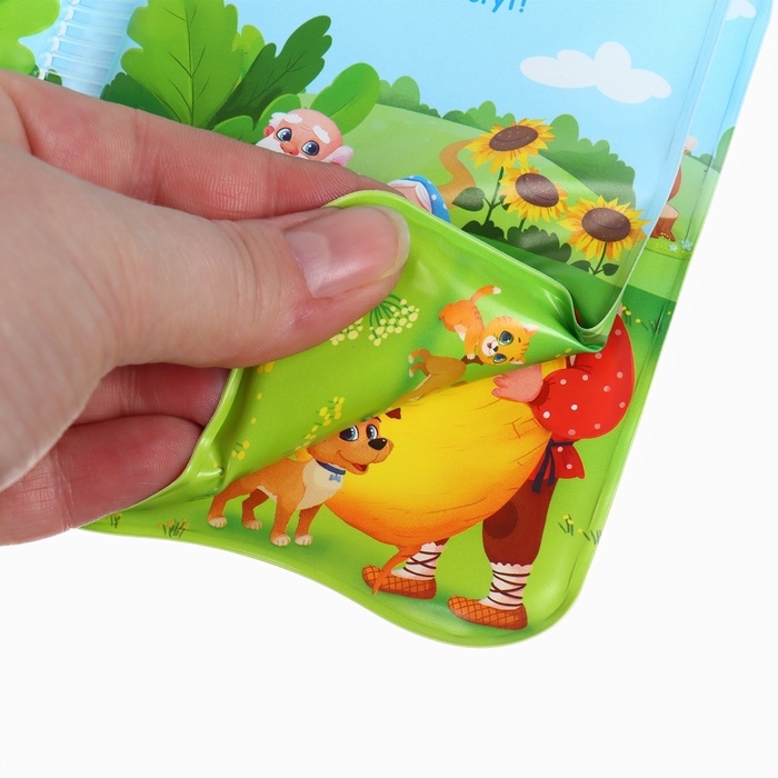 Читать в любое время и в любом месте, даже во время купания — легко! Книжечка сделана из мягкого непромокаемого материала. Поэтому с ней смело можно играть во время водных процедур или брать с собой на прогулку. Мягкие страницы не рвутся и легко очищаются.