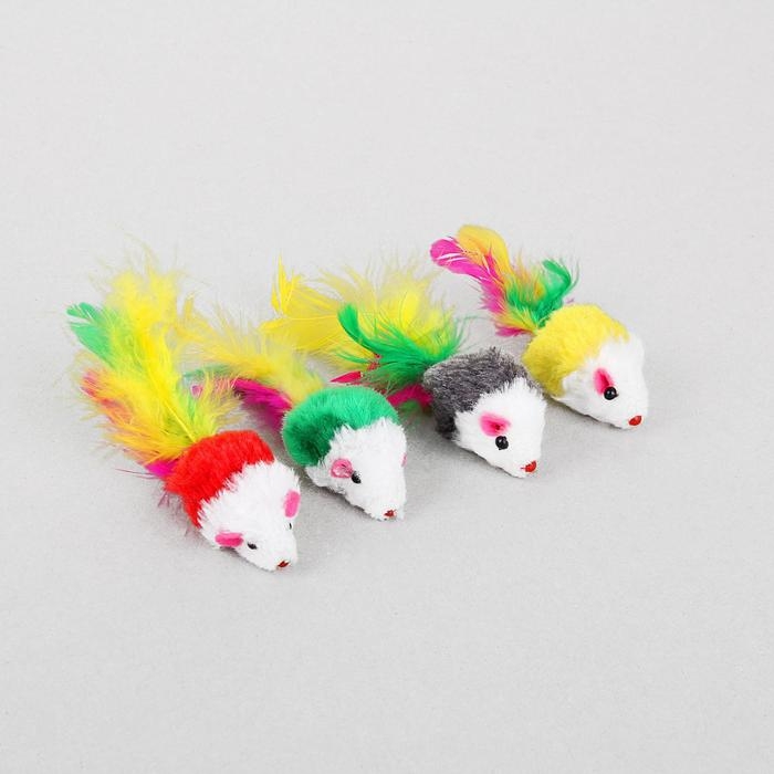 Игрушка для кошек "Малая мышь" с перьями, 5 см, микс цветов