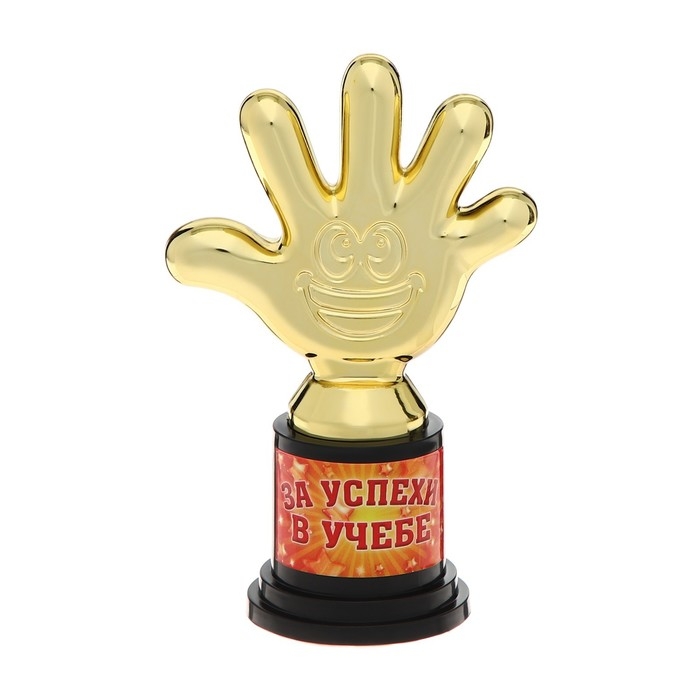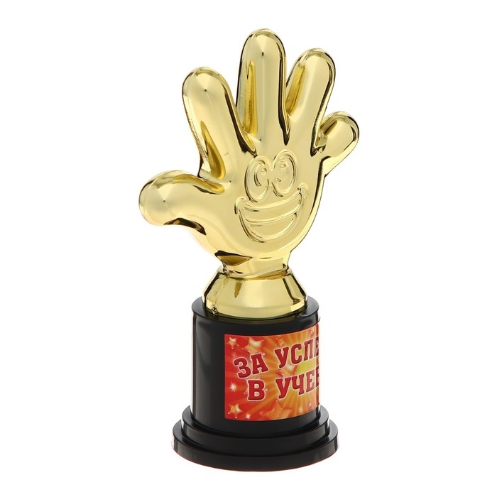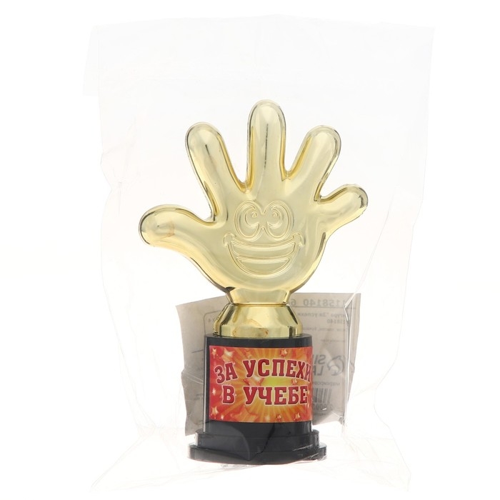 Наградная фигура «За успехи в учебе», пятерня, кубок, пластик, золото, 6,5 х 10,5 х 4 см.