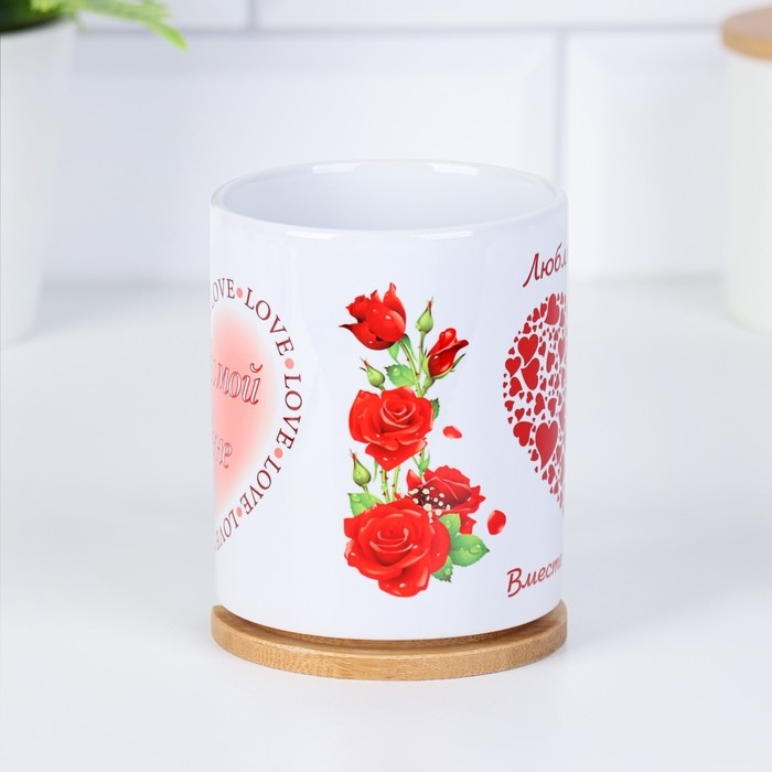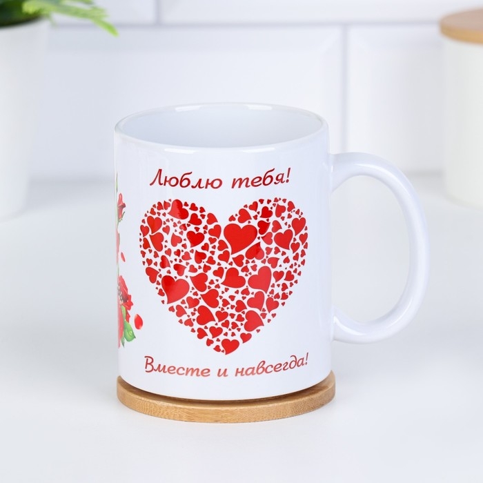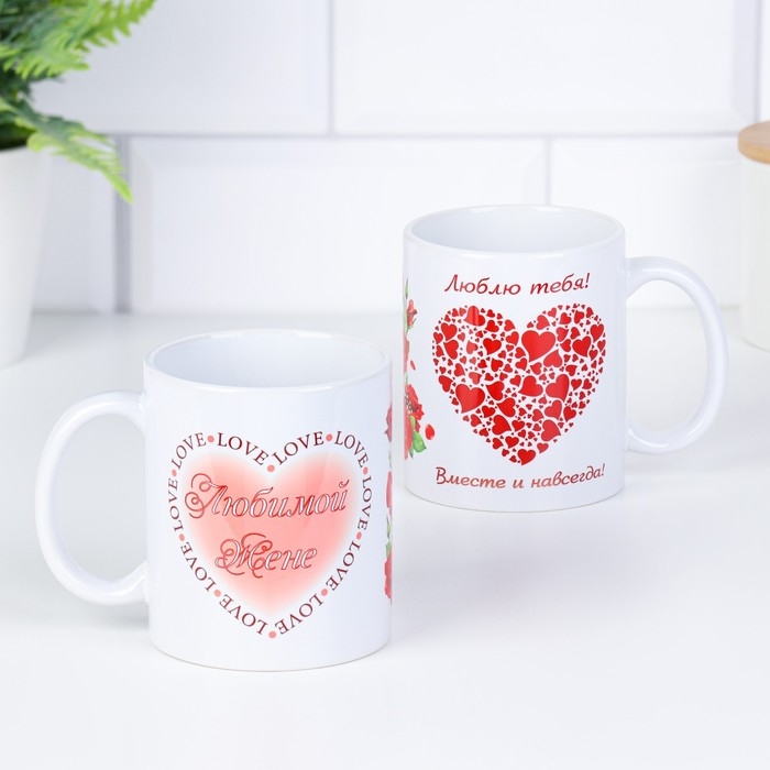 Кружка чайная керамическая "Любимой жене" люблю тебя сердца