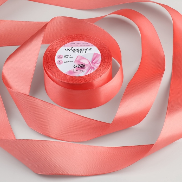 Лента атласная, 40 мм × 23 ± 1 м, цвет лососёвый №263