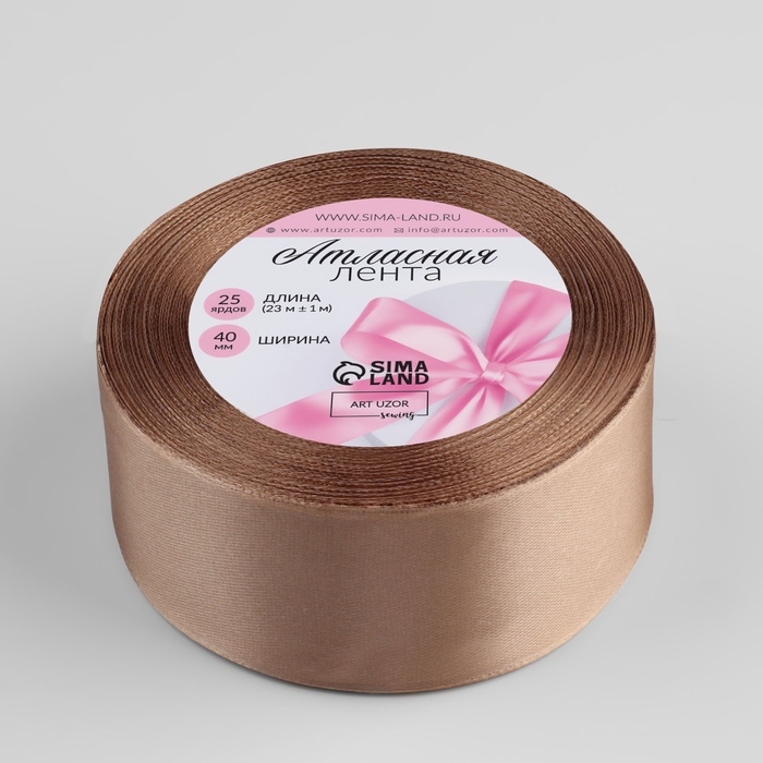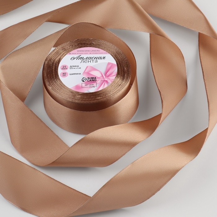 Лента атласная, 40 мм × 23 ± 1 м, цвет тёмно-кремовый №268