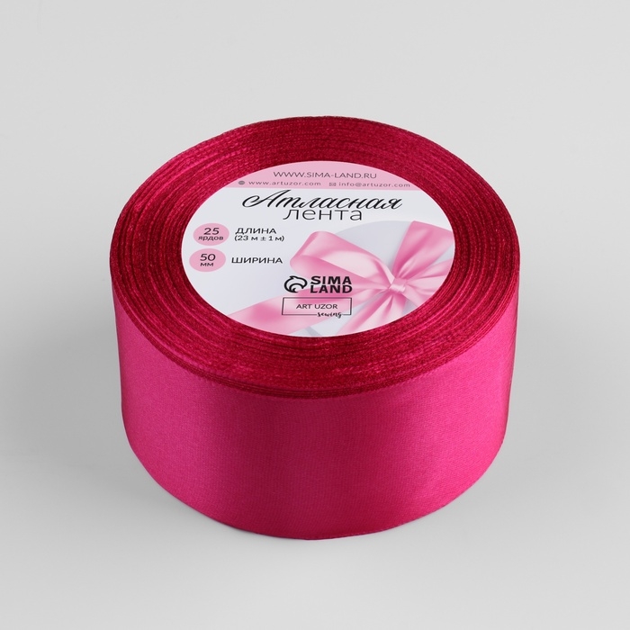 Лента атласная, 50 мм × 23 ± 1 м, цвет амарантовый №27
