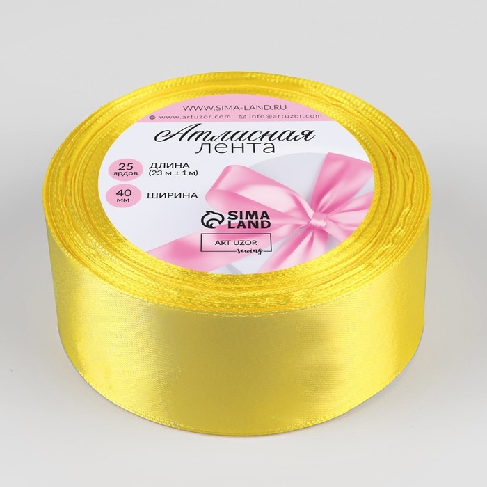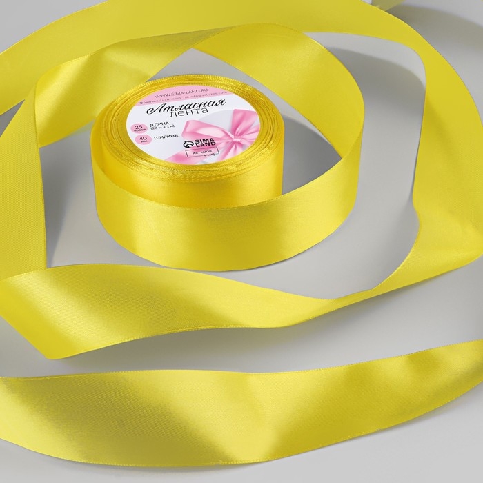 Лента атласная, 40 мм × 23 ± 1 м, цвет жёлтый №15
