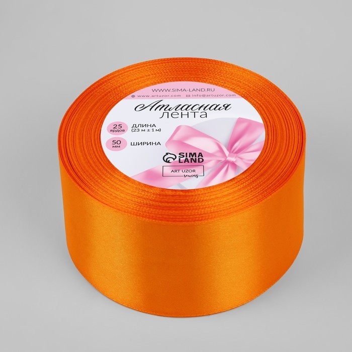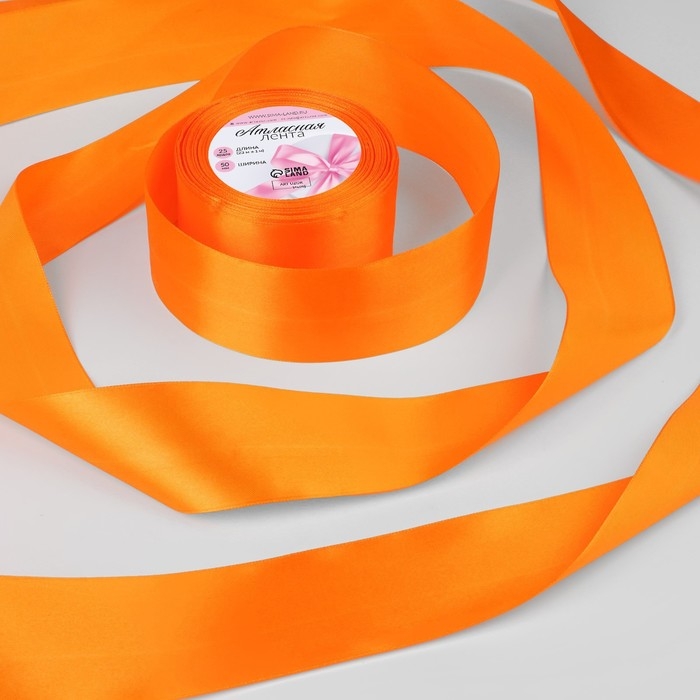 Лента атласная, 50 мм × 23 ± 1 м, цвет ярко-оранжевый №25
