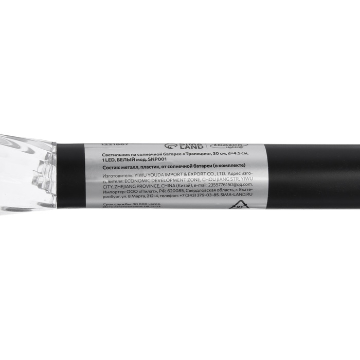 Садовый светильник на солнечной батарее «Трапеция», 4.5 × 30 × 4.5 см, 1 LED, свечение белое