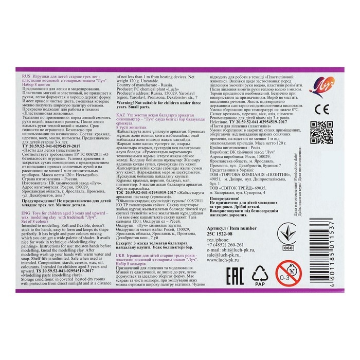 Пластилин восковой "Фантазия"в яркой подарочной упаковке предназначен для широкого круга покупателей самого разного возраста. Пластилин данной линейки, благодаря специально разработанной рецептуре, отличается от классического пластилина мягкостью и эластичностью, очень красивой и богатой палитрой цветов. Перед началом лепки не требует предварительного разминания, при этом сохраняет все свойства классического пластилина. Идеально держит форму, не липнет к рукам и не пачкается. Имеет чистые, красивые цвета, на которых останавливается детский взгляд. Можно комбинировать с классическим пластилином. Пластилином можно не только лепить, но и рисовать по бумаге и картону. Два вида дизайна.