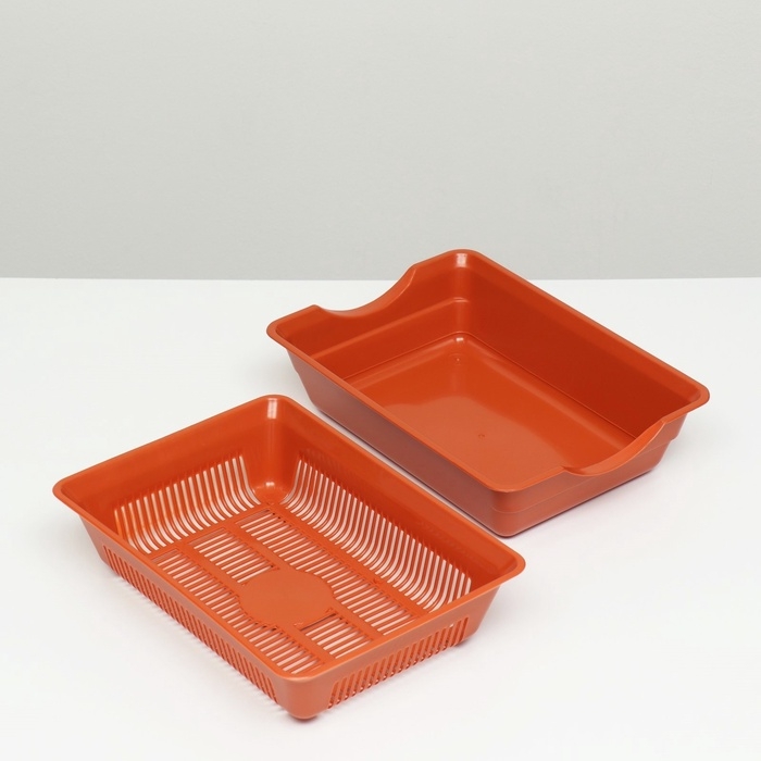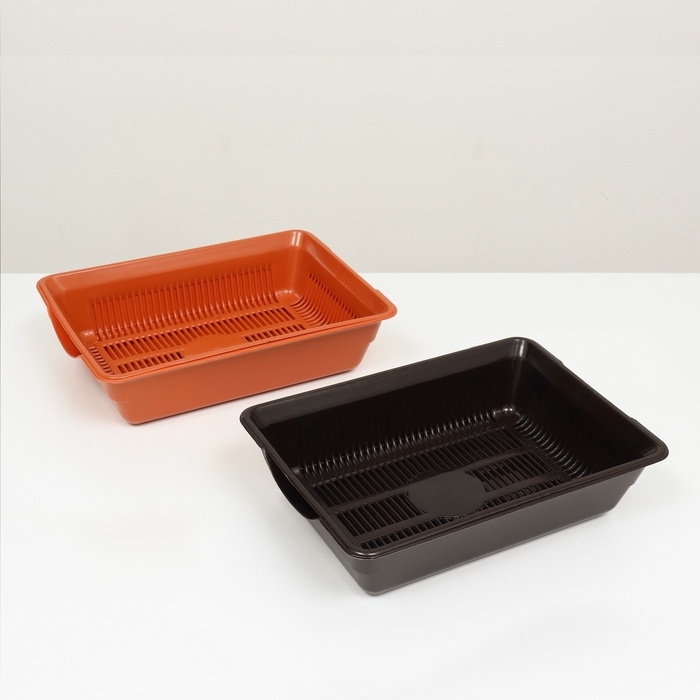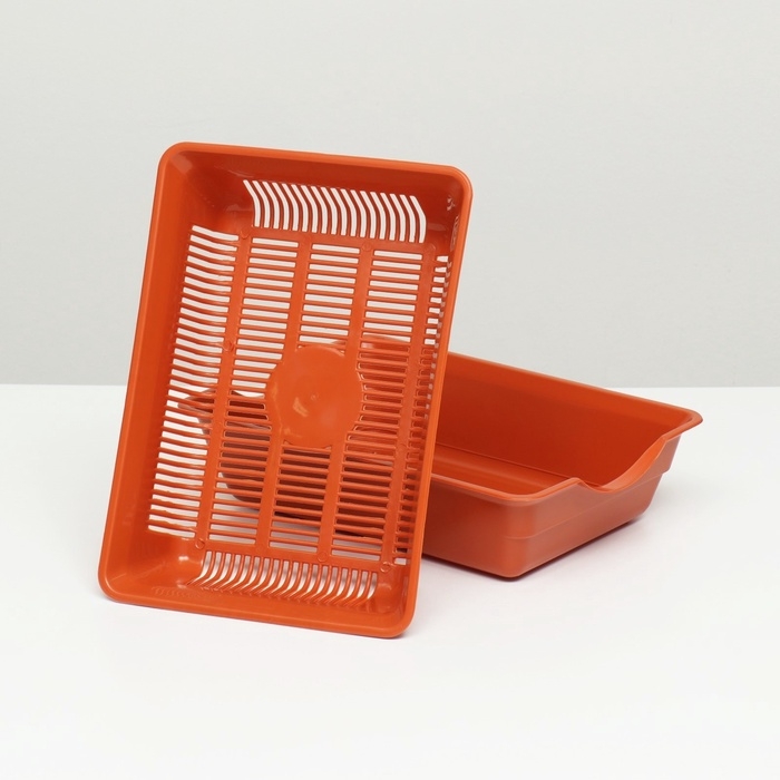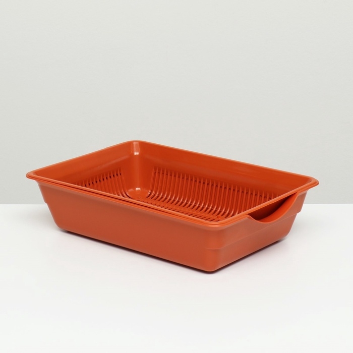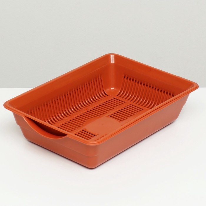 Туалет для кошек, 36×25×9 см, глубокий, с сеткой, пластик, коричневый