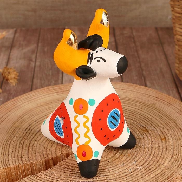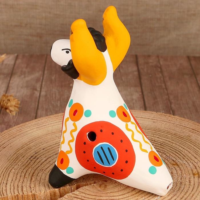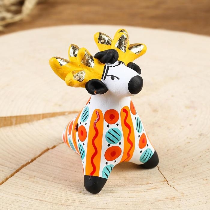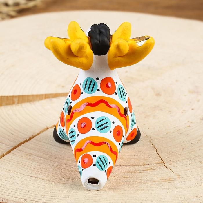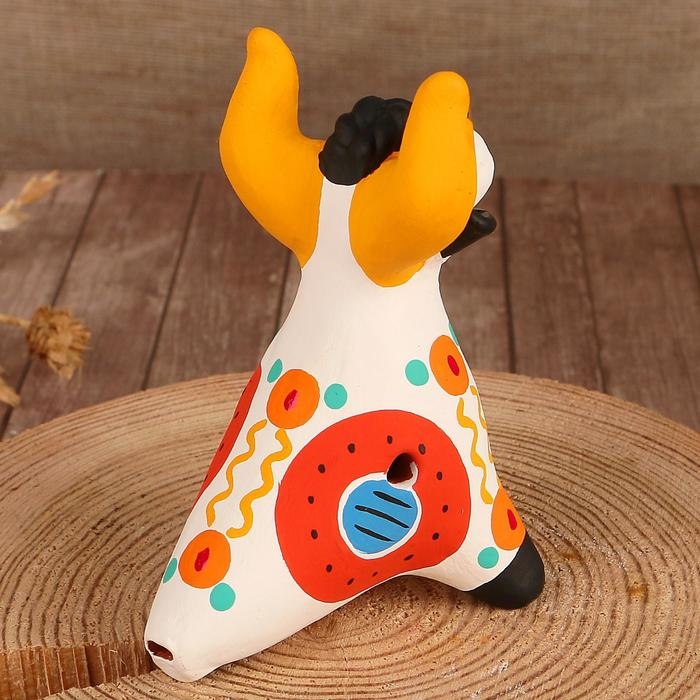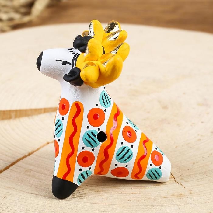 Дымковская игрушка "Свистулька олень"