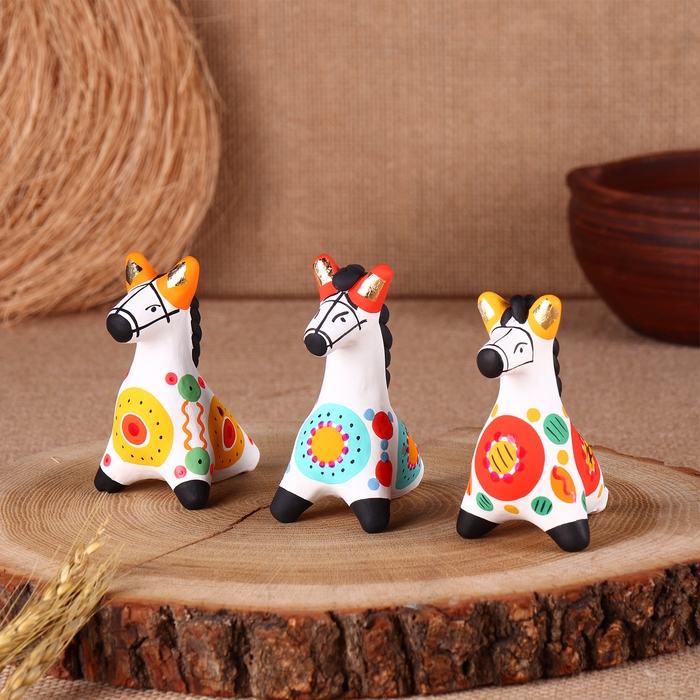 В производстве используется только местная красная глина. Части игрушки лепят по отдельности, а затем собирают воедино.