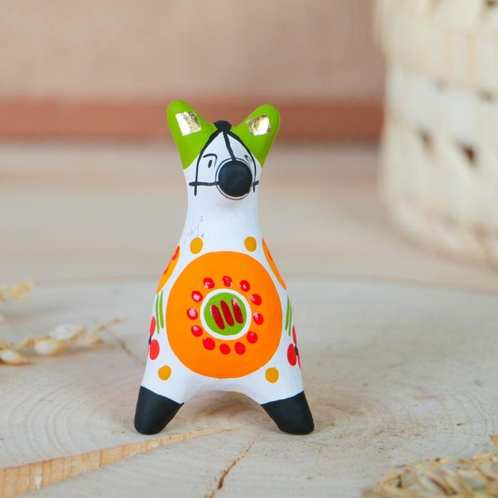 Дымковская игрушка "Собака оранжевая" 7 см