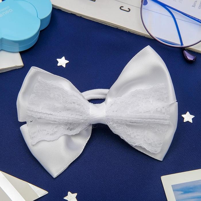 Резинка для волос бант "Школьница" кружева, 7х10 см, белый