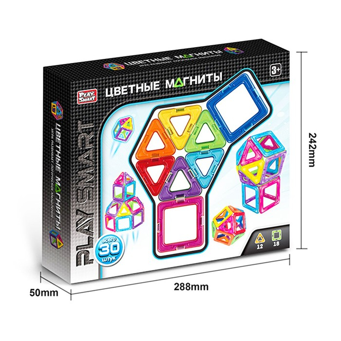 Конструктор магнитный «Цветные магниты», 30 деталей