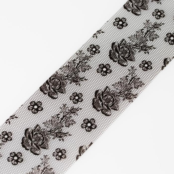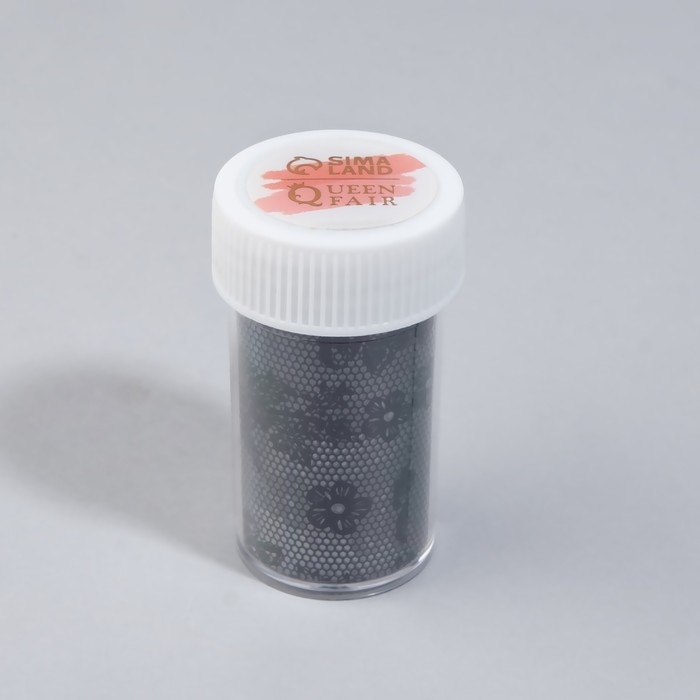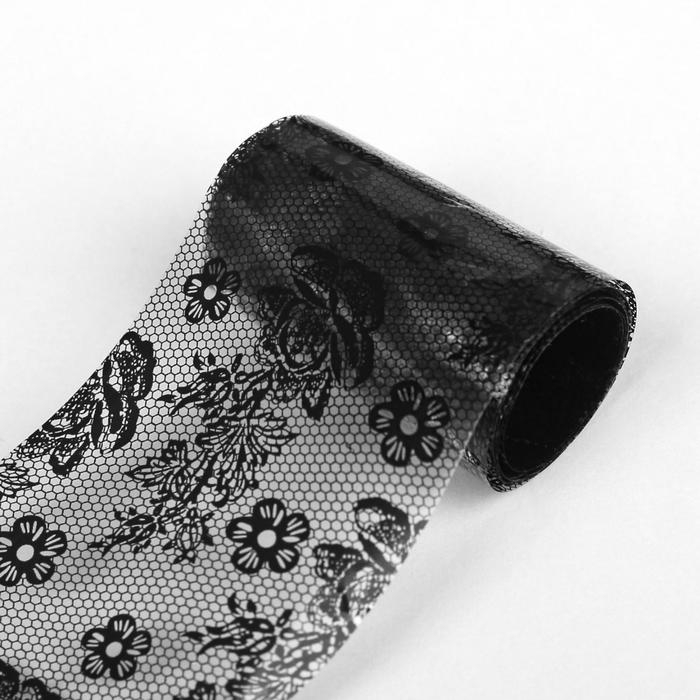 Фольга для ногтей «Гипюр», с рисунком, 4×50 см, в пластиковом футляре, чёрная