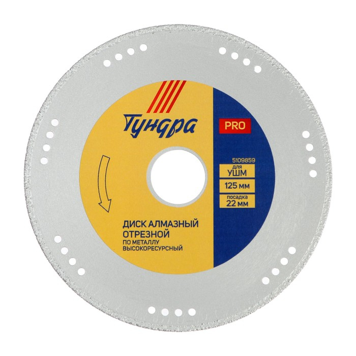 Диск алмазный отрезной ТУНДРА ПРОФИ, по металлу, высокий ресурс, сухой/мокрый рез, 125х22 мм