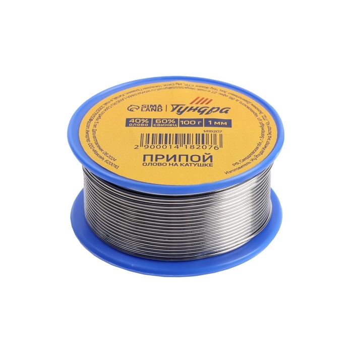 Припой ТУНДРА, ПОС 40, на катушке, 1 мм, 100 г