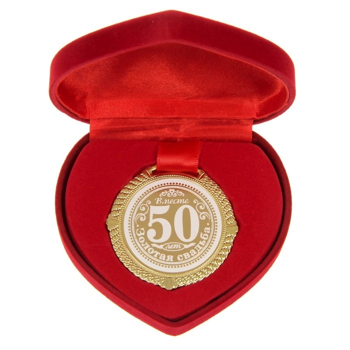 Медаль свадебная в бархатной коробке «Золотая свадьба 50 лет вместе», d= 5 см