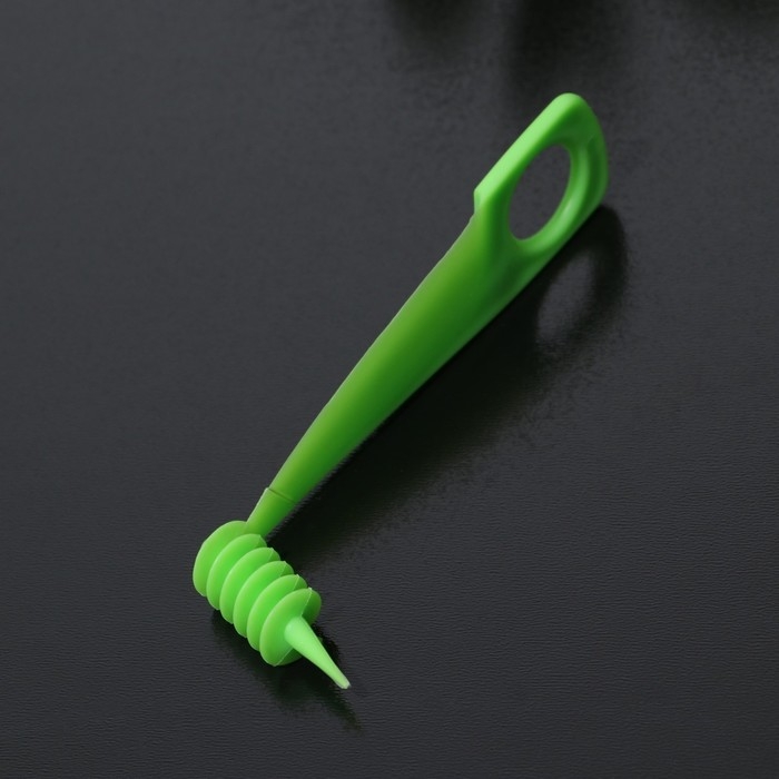 Работа с изделием проста: вотките его в мякоть фрукта или овоща заострённой частью и начните вращать. Нож подойдёт для различных продуктов: огурцов, лимонов, ананасов, авокадо, киви и других.
