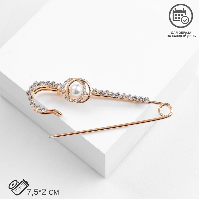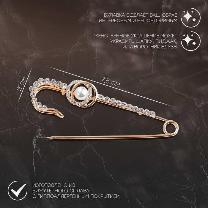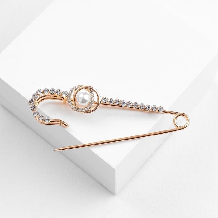 Булавка «Жемчужная россыпь» со стразами, 7,5 см, цвет белый в золоте