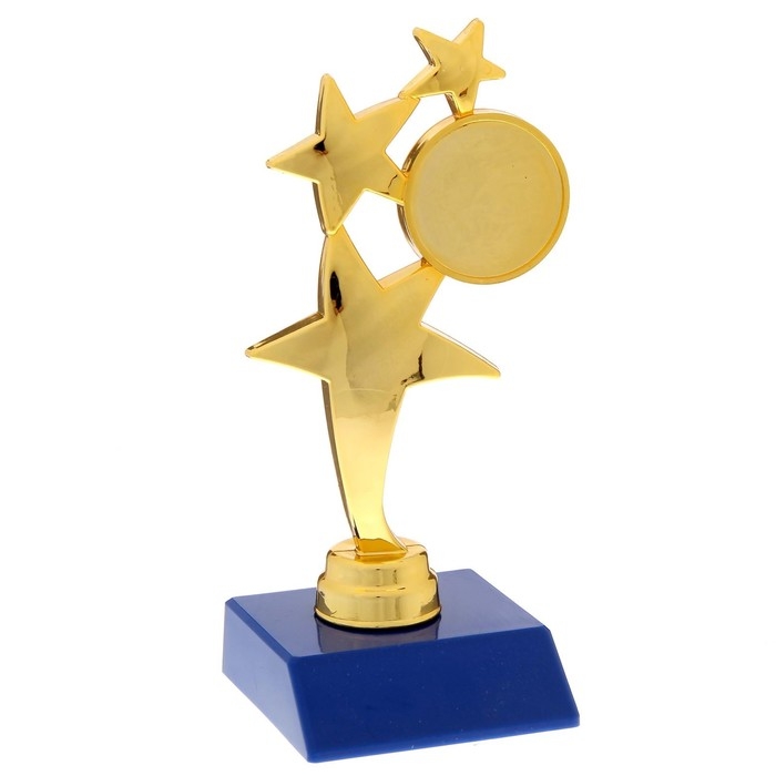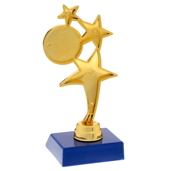Наградная фигура «Три звезды», золото, подставка пластик синяя, 15,5 х 7,5 х 6 см.