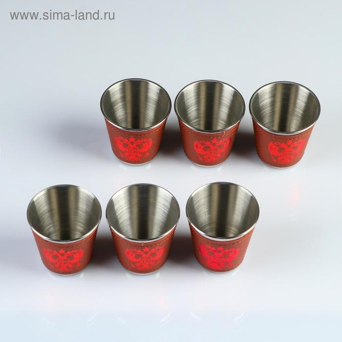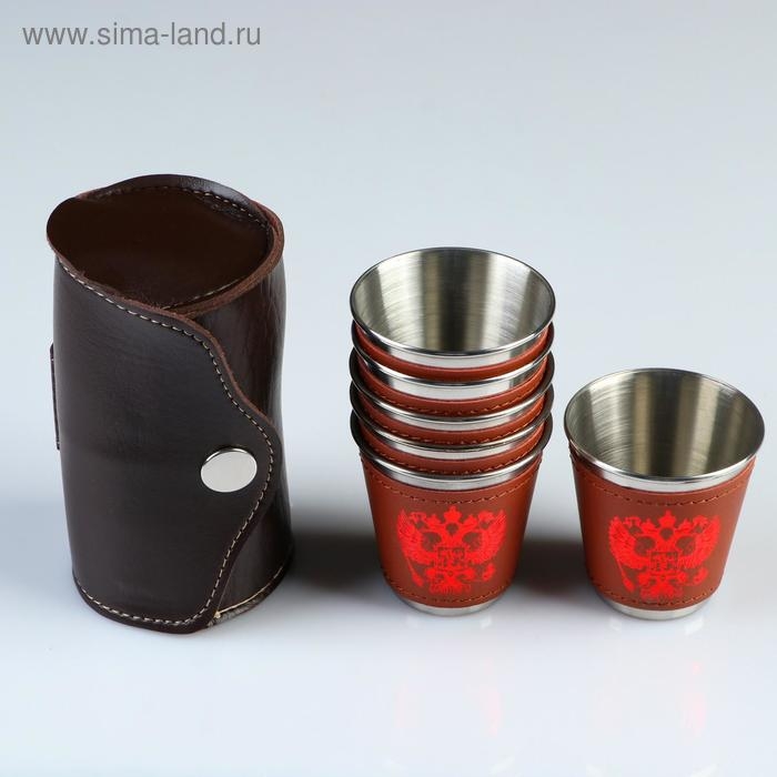Стопки «Герб», 75 мл, нержавеющая сталь, в чехле, коричневые, набор 6 шт