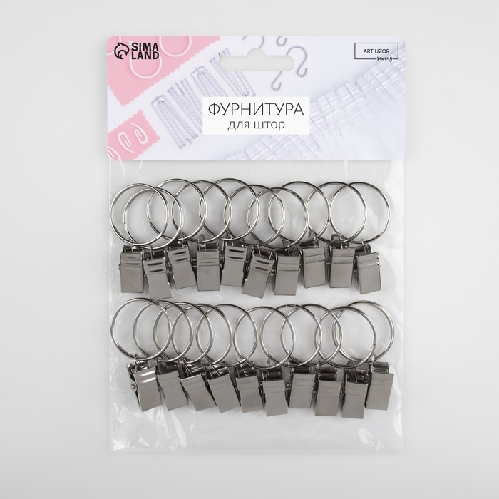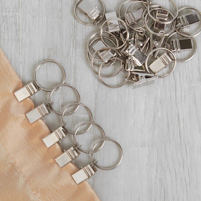 Кольцо для карниза, с зажимом, d = 22/26 мм, 20 шт, цвет серебряный
