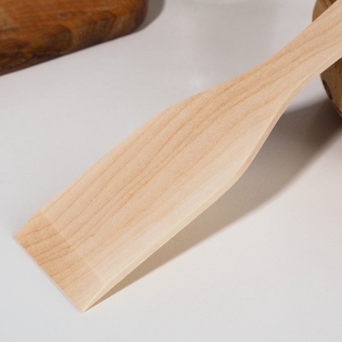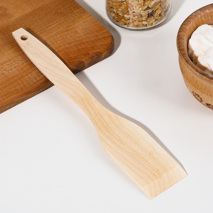 Деревянная лопатка подходит для любого вида посуды, в том числе для изделий с антипригарным покрытием. Кухонные принадлежности из берёзы не влияют на вкусовые качества продуктов, ведь дерево является экологически чистым материалом.