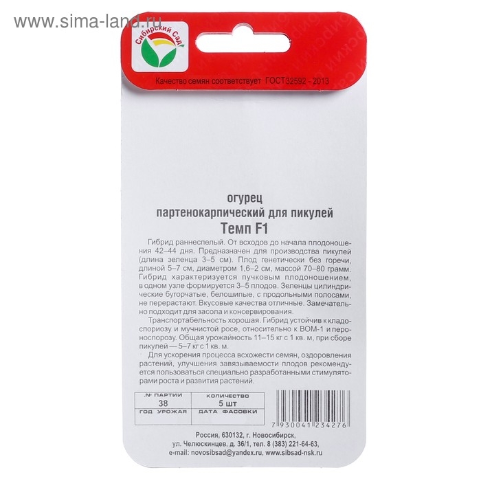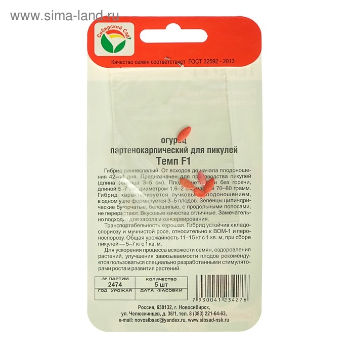 Семена Огурец Темп F1,партенокарпический, 5 шт