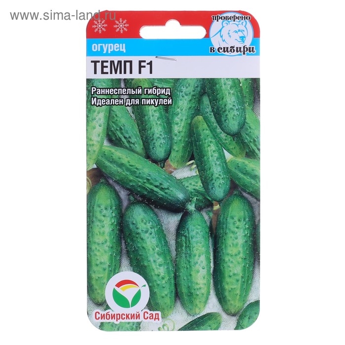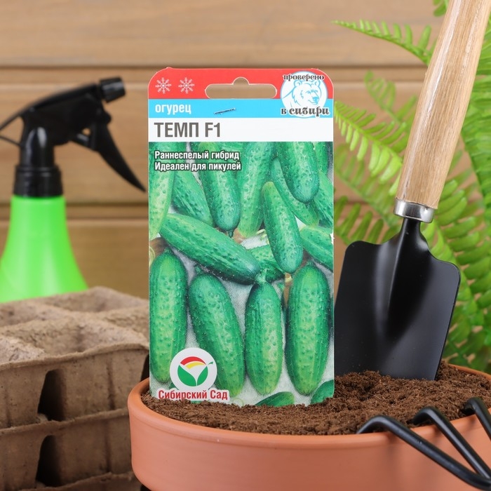 «Темп» — это раннеспелый партенокарпический сорт, техническая спелость которого наступает через 39–43 дня. Гибрид предназначен для выращивания в плёночных теплицах и открытом грунте. На каждом узле образуется по 3–5 цилиндрических бугорчатых корнишонов массой 70–80 г. Огурцы отлично подходят для употребления в свежем виде, консервирования и засолки.