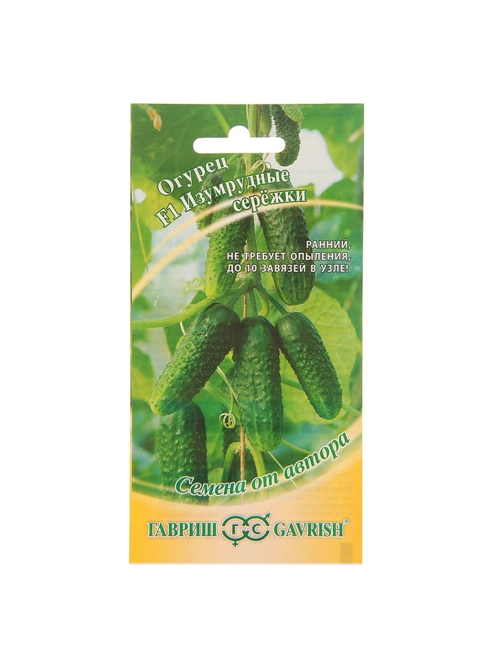Семена Огурец "Изумрудные сережки" F1, корнишон, раннеспелый, партенокарпический, 10 шт