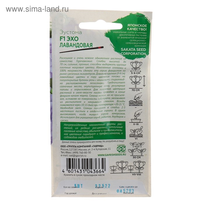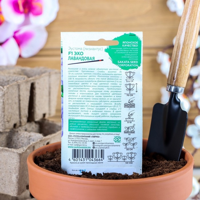 Семена цветов Эустома "Эхо" лавандовая F1, гранулы, пробирка, О, ц/п, 4 шт.