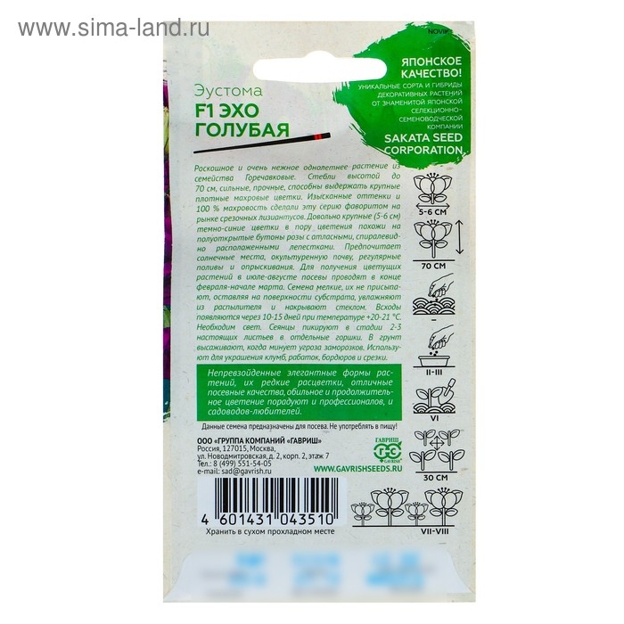 «Эхо» — это красивая однолетняя эустома. Прочные стебли растения достигают 70 см в высоту.
