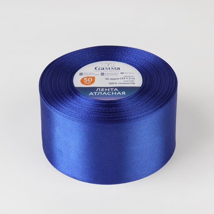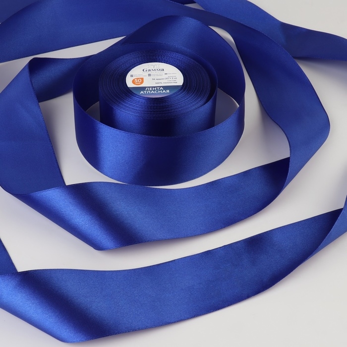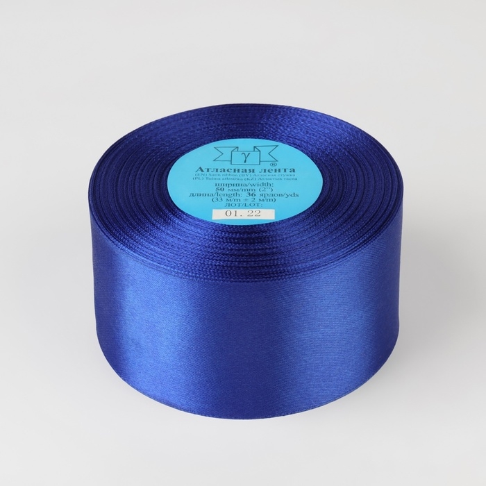 Лента атласная, 50 мм × 33 ± 2 м, цвет синий №094