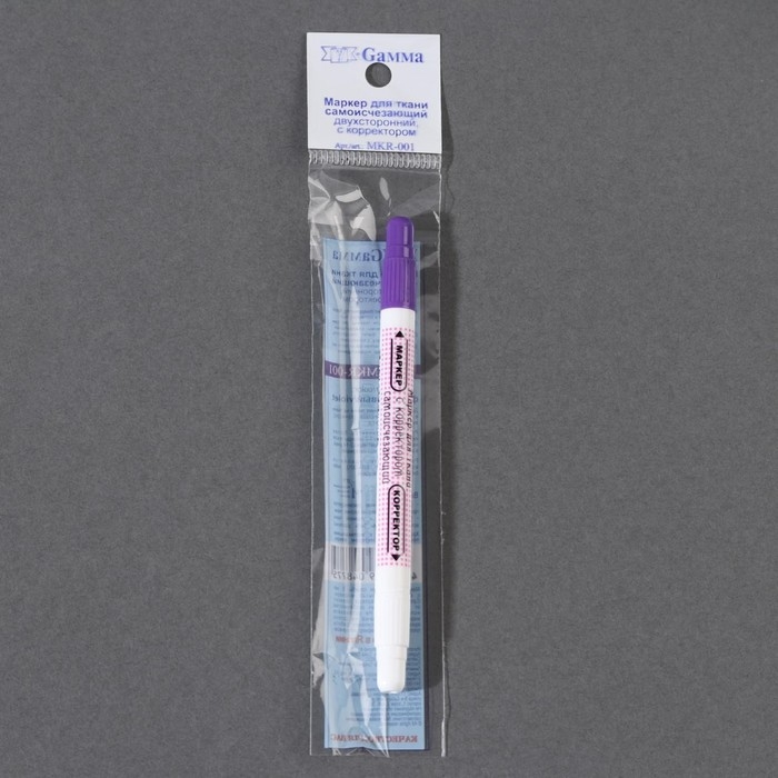 Маркер для ткани, самоисчезающий, с корректором, цвет фиолетовый