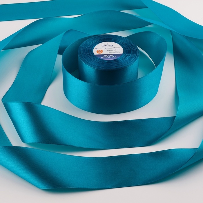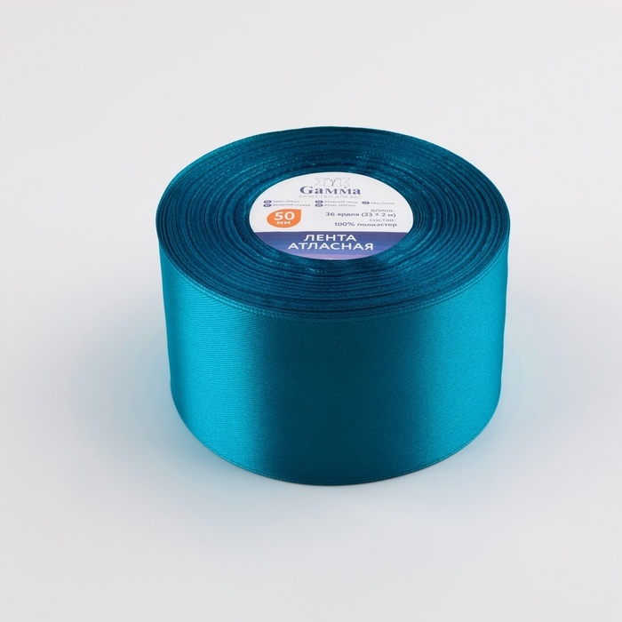 Лента атласная, 50 мм × 33 ± 2 м, цвет ярко-голубой №074