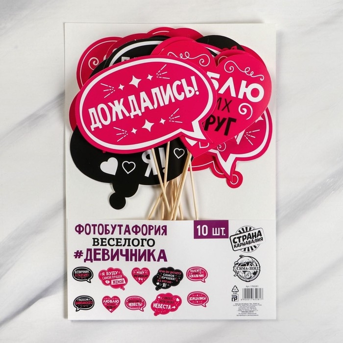 Набор для фотосессии 10 предметов. Аксессуары для фотосессий сделают любую вечеринку незабываемой, ведь ни один праздник не обходится без фото, будь то день рождения, гендерпати, 23 февраля, 8 марта, Новый год, свадьба, девичник или просто праздничная вечеринка. На любом празднике хочется выделяться, а карточки для фотобутофории отлично выполнят эту задачу, сделают вас заметным и неповторимым. Любой ребенок, девочка или мальчик, обязательно захотят сфотографироваться с набором аксессуаров для фотосессии. Данный набор фотобутофории отличный вариант для девичника, замечательно впишется в любую тематику торжества.