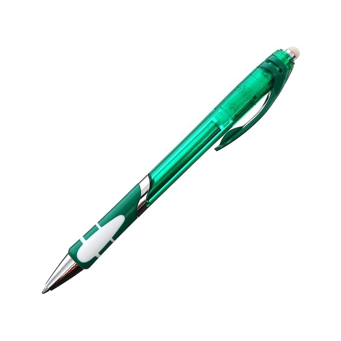 Ручка шариковая со стираемыми чернилами, линия 0,8 мм, автоматическая, стержень синий, корпус тонированный с резиновым держателем