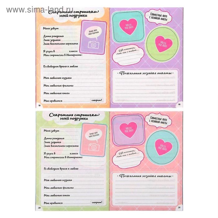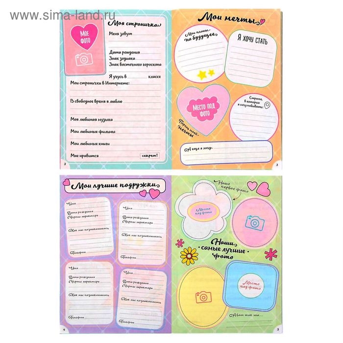Анкета для девочек — это уникальная книга для записей увлечений, сокровенных мыслей, секретов и планов на будущее маленьких принцесс.