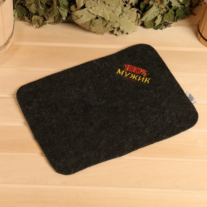 Коврик для бани 50х40 см с аппликацией "Дубовый лист" черный