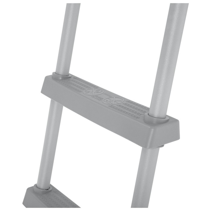 Лестница устанавливается по обе стороны бассейна. Каркас изготовлен из нержавеющего металлического сплава, ступени сделаны из прочного пластика. Выберите подходящее место для входа в бассейн и поставьте лестницу там, где вам удобно.