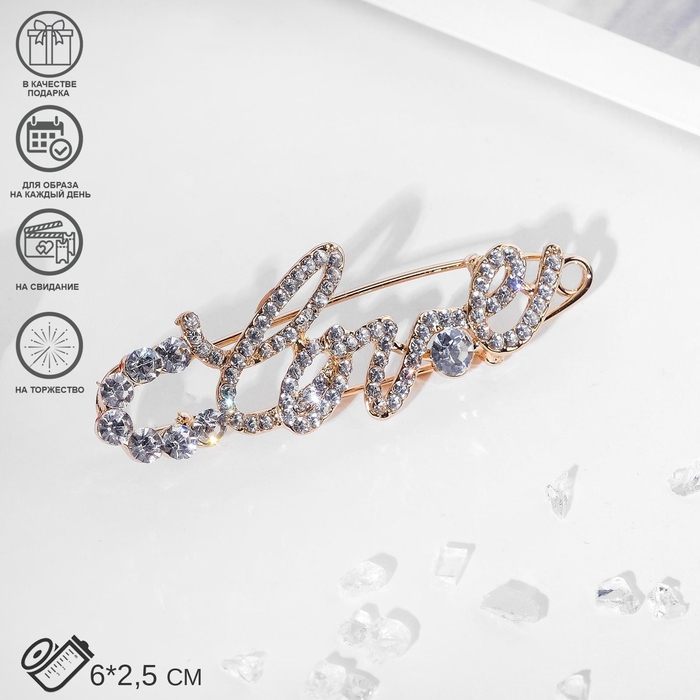 Данная булавка – настоящая находка для модниц, предпочитающих нетривиальные аксессуары. Брошь-булавка станет не только оригинальным дополнением вашего наряда, но и позволит без труда приколоть при необходимости палантин или шейный платок. Используйте её в качестве украшения шляпки, рубашки или галстука. Булавка LOVE, 6 см, цвет белый в золоте внесёт особую нотку изящности в ваш образ.