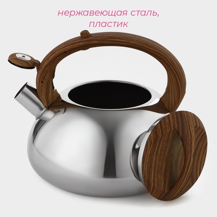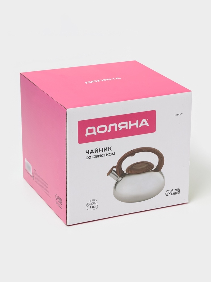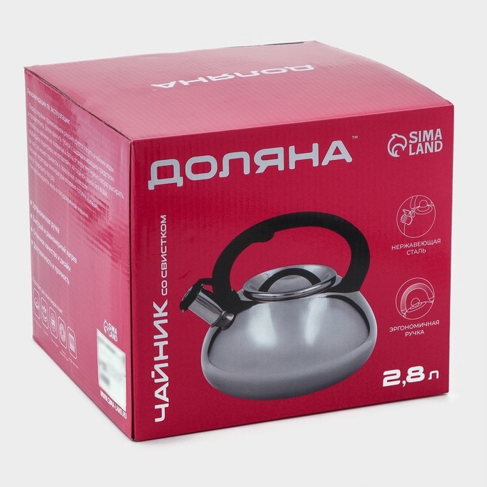 Чайник со свистком из нержавеющей стали Доляна «Квант», 2,8 л, фиксированная ручка soft-touch, цвет хромированный